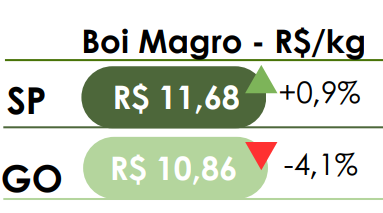 - Em SP, o boi magro foi negociado a R$ 11,68/kg.