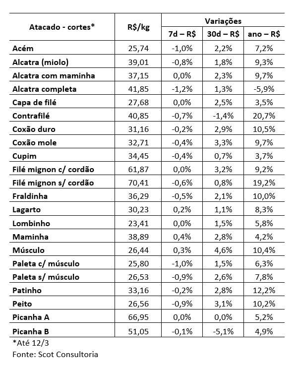 No curto prazo, as vendas devem perder o ritmo com o avanço do mês, ou seja, a demanda por carne bovina tende a cair na última quinzena de março!