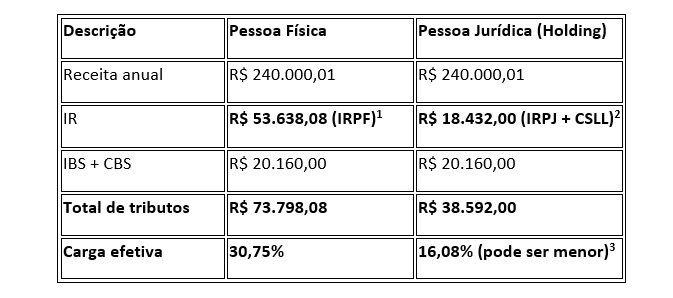 3 – A carga tributária efetiva da Holding pode ser ainda menor mediante a utilização de créditos de IBS e CBS permitidos na nova lei.