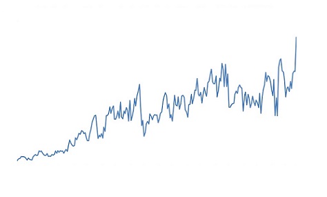 A Figura a seguir ilustra a evolução mensal da receita com a exportação de carne bovina do Brasil entre janeiro de 2000 e outubro de 2019, em milhões de dólares.