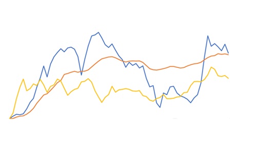 A Figura a seguir ilustra a evolução da variação acumulada do preço do boi gordo (Cepea), dólar e do indicador de inflação, IGP-M, entre os meses de maio, de 2024 e 2025.