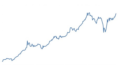 A Figura a seguir ilustra a evolução dos preços do contrato para vencimento em setembro de 2021, CCMU21, ao longo de 2020 e 2021, em Reais por saca.