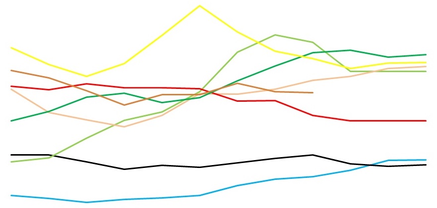 A Figura a seguir apresenta o comportamento mensal dos preços da soja, desde 2010, segundo indicador Cepea/Esalq.