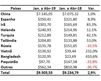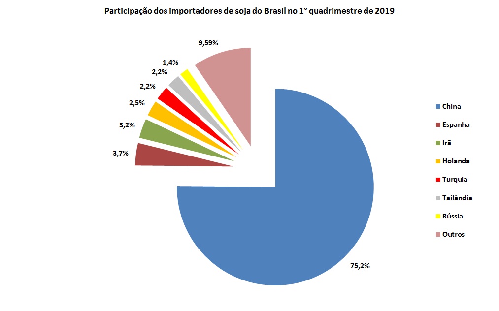 Principais importadores de soja do Brasil no 1° quadrimestre de 2019