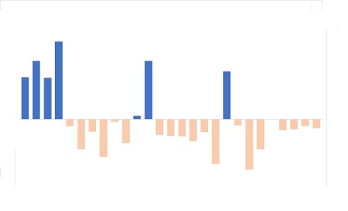A Figura a seguir apresenta a evolução mensal da variação do preço do bezerro (Cepea, Mato Grosso do Sul), avaliado em Reais por cabeça, entre 2021 e a parcial de março de 23 (até o dia 14).
