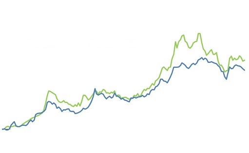 Afinal, como tem evoluído os preços do boi gordo e do bezerro, em valores nominais no longo prazo? A Figura a seguir ilustra a variação dos preços do boi gordo e do bezerro, em Reais por arroba, segundo dados do indicador Cepea/Esalq, em valores nominais. Lembrando que os preços do bezerro foram convertidos em Reais por arroba segundo o peso médio de venda, considerando a referência de Mato Grosso do Sul.